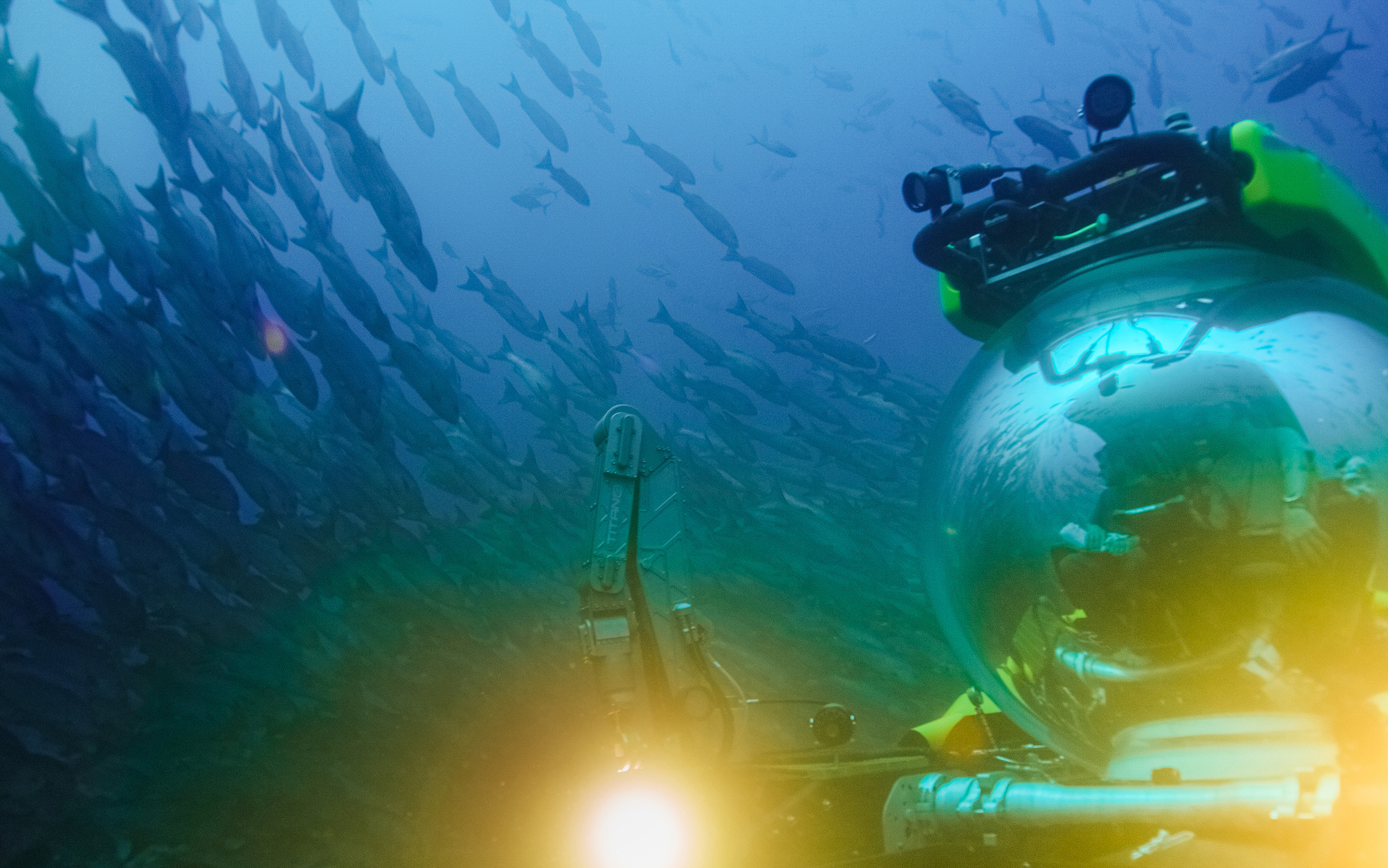 “OceanXperience” sub with fish image courtesy of OceanX. Click here for 300 dpi version.